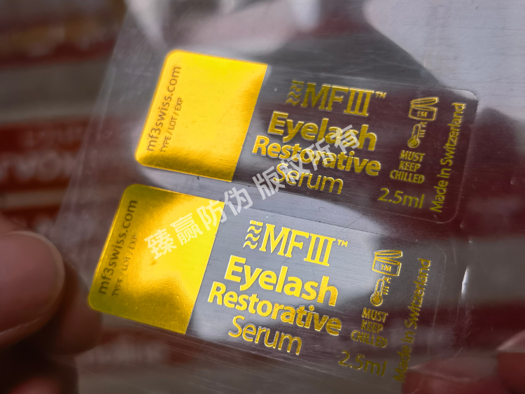 化妆品:由于其外观高贵典雅,且具有良好的防水、防油、撕不破、防磨等特性,非常适合用于化妆品的防伪标识。