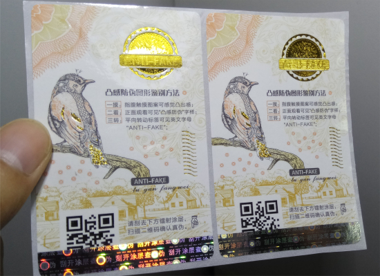 定义: 防伪标签因为它独一无二的防伪图案,美观信息储存量大,客户可以扫描获取产品生产信息、来源、企业信息,还可以扫描查询真伪。